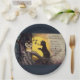 Set von Tellern aus Papier, jedes mit einem Vintagen Halloween-Bild, das eine etwas angespannte Katze zeigt, die eine Warnung an die mit Augen Eule im Baum schrie: "Vorsicht! Pass auf! Denn Geister werden zu Halloween gesehen."