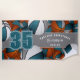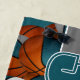 Dieses spaßige Strandtuch für Basketballspieler bietet Basketballbälle unterschiedlicher Größe mit aquamarin- und grauen Teamfarben, die auf aquamarinem Hintergrund gedreht werden, und eine prominente Trikotnummer in aquamariner Farbe, die einen grauen Farbstreifen in voller Länge überragt, auf dem Sie auch den Namen, den Teamnamen und den Maskottnamen des Athleten personalisieren können - durch katz_d_zynes