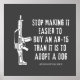 Word Art Square Poster, die sich für die Reform der Schusswaffen, verfügt über Angriffsgewehr Silhouette mit "Hör auf, es einfacher zu machen, eine AR-15 kaufen, als es ist, einen Hund adoptieren. #stopunforce" Weißer Text und Grafik