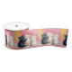 Eine fröhliche Gruppe von Katzen und Mäusen wird vor einem lebhaften rosa Hintergrund mit Herzmotiven im kawaii-Stil zusammengeführt