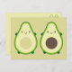 Paar glücklicher kawaii avocado halbe auf einem grünen Hintergrund. Ideal für Vegetarier, Veganer und Jahrtausende!