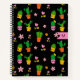 Kawaii Cactus Monogram Black Spiral Notebook Notizbuch
