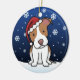 Niedliche amerikanische Gruben-Stier-Terrier-Weihnachtsverzierung, gezeichnet in kawaii Cartoon! Diese entzückende Hundezucht trägt eine rote Weihnachtsmannmütze, und Schneeflocken fallen ganz um ihn. Absolut süß, perfekt für den des Hundebaum liebhabers Weihnachts!