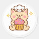 A cute kawaii cat chef holding a giant cupcake with pink frosting and colorful sprinkles. Soft pastel colors with boosted vibrancy make this perfect for planners, journals, gifts, packaging, and anyone who loves cats and sweets. A cheerful and whimsical sticker for everyday joy.
