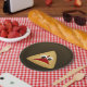 Illustrierter Hamentashen-Keks im Kawaii-Stil, gefüllt mit Rotkirsche.