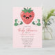 Feiern Sie die süßeste Ankunft mit dieser Kawaii-Erdbeer-Baby-Shower-Einladung. Mit einer entzückenden lächelnden Erdbeere mit floralen Akzenten und einem rosa Hintergrund ist dieses spielerische Design perfekt für fruchtige Themen, Sommer-Shower oder jeden, der süße ästhetische Vibes liebt. Vollständig anpassbar mit Ihren Veranstaltungsdetails und unterstützt von einem lustigen Erdbeermuster für zusätzlichen Charme. Hervorragend geeignet für Mädchen-Shower oder geschlechtsneutrale Feiern mit einer zauberhaften Note.