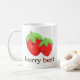 Diese Tasse des Kaffees, des Tees oder der heißen Schokolade kennzeichnet kawaii Erdbeeren.