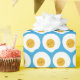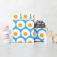 Ein wiederholtes Muster frittierter Eier, sonnige Seite oben auf blauem Hintergrund.