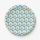 Ein wiederholtes Muster frittierter Eier, sonnige Seite oben auf blauem Hintergrund.