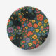 Kawaii Garden Art – Cute Black Cat Floral Pattern Pappteller