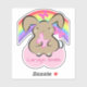 Konturaufkleber eines sehr niedlichen, hellbraunen, Kawaii-artigen Hasen mit rosa Schmetterlingen, vor einem schönen Regenbogen. Sie können es mit Ihrem Namen personalisieren.