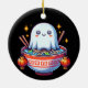 Niedliche Kunst eines Geistes auf einer Schüssel Nudeln mit Laternen für das Hungry Ghost Festival.