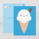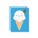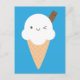 Ein klassischer britischer Vanilleeiskegel '99' mit Schokoladenflocken, kawaii Stil, auf einem hellblauen Hintergrund. Die perfekte sommerliche Leckerei.