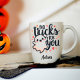 Niedliche Kawaii Halloween individuelle Name Tasse für Paare. Das Design enthält den Text "No Tricks For You" in schwarzer Kalligraphie-Stil Typografie mit schwarz und rot kawaii Stil Geist und Herz-Elemente. Macht das beste personalisierte Halloween-Geschenk für Freundin/Freund und Ehefrau/Ehemann. Perfekt, um sie sich ganz besonders zu fühlen, ihr Vertrauen zu stärken und ein einzigartiges und bequemes Geschenk zu bekommen! Für weitere kawaii-themed niedlichen Paar Halloween-Designs, Karo aus unserer Kollektion und Shop! Frohe Halloween!