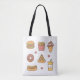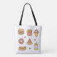 Eine niedliche und bunte Taschentasche mit Gekritzeln der Eiscreme auf Kegel, Hotdogwurstbrötchen, Krapfen mit besprüht, Scheibe der Pepperonipizza, saftiger Schinkenburger, Pommes-Frites und kaltes Soda! Kawaii Entwurf für Mädchen besonders wenn sie Liebekramnahrung und Schnellimbiß.