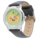 Kinder Edelstahluhr mit schwarzem Lederarmband