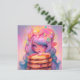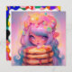 Weiße Pastellkunst einer magischen Fee mit Regenbogenhaaren, funkelnden Sternen und einem Stapel süßer Pfannkuchen. Ein traumhaftes und spielerisches Design, das jedem Geburtstagsfest eine verzauberte Touch verleiht.