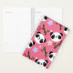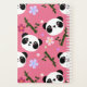 Lächelnde Panda-Gesichter, Blume und Bambus im kawaii-Stil mit rosa Hintergrund