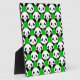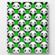 Ein niedlicher Panda-Bär, kawaii-Cartoon-Stil. Originelles Design in Schwarz und Weiß mit grünem Hintergrund.