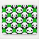 Ein niedlicher Panda-Bär, kawaii-Cartoon-Stil. Originelles Design in Schwarz und Weiß mit grünem Hintergrund.