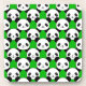 Ein niedlicher Panda-Bär, kawaii-Cartoon-Stil. Originelles Design in Schwarz und Weiß mit grünem Hintergrund.