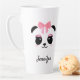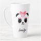 Niedliche Panda mit Wimpern personalisierte latte Tasse. Hübsche kubby kawaii Panda Gesicht mit rosa Wangen und Wimpern. Fügen Sie einfach Ihren Namen hinzu, um die Tasse zu personalisieren. Liebliches Geschenk für ein Mädchen, eine Tochter, eine Freundin zum Geburtstag oder einen anderen besondere Anlass. Zweiseitige Abbildung auf jeder Seite der Tasse.