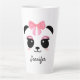 Niedlich Panda personalisierte latte Tasse. Hübsche kubby kawaii Panda Gesicht mit rosa Wangen, moderne rosa Wimpern und rosa Band. Fügen Sie einfach Ihren Namen hinzu, um die Tasse zu personalisieren. Liebliches Geschenk für ein Mädchen, eine Tochter, eine Freundin zum Geburtstag oder einen anderen besondere Anlass.