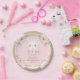 Diese super entzückende Wegwerfpapierplatten-Eigenschaftsillustration eines niedlichen lächelnden Babyhäschens, das durch weiblichen Watercolor umgeben wird, erröten rosa Rosen. Die Benennung ist völlig kundengerecht. Wenn Sie wollen, um die Schriftartart zu ändern, knöpft Farben oder Klicken der Textplatzierung einfach das "weiter besonders anzufertigen Klicken,".