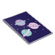 Niedliche Planeten mit kawaii Gesichtern und kleine Sterne im Raum. Pastellfarben auf einem dunkelblauen Hintergrund.