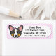Diese bezaubernden schwarz & tan Cardigan Welsh Corgi Adressetiketten haben einen rosa karierten Hintergrund. Ein Cartoon tri Cardigan Welsh Corgi ist auf der rechten Seite, und Sie können sofort personalisieren den Namen und die Adresse auf der rechten Seite. Sehr niedliche Lieblingsprodukte in Menagerie Mayhem.