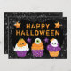 Niedlicher Kawaii-Kürbis, Gespenst- und Augapfelkuchen mit schwarzem Glitzer-Hintergrund