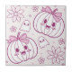 Kawaii Pumpkins, Ghosts & Blume Keramik Tile - Eine charmante Sammlung von skizzierten Illustrationen im kawaii-Stil, mit lächelnden Kürbissen mit Bögen, freundlichen kleinen Geistern und einfachen, zarten Blume in verschiedenen Größen. Jedes Element wird mit klaren Linien und einer spielerischen, kartoonischen Ästhetik gezeichnet - perfekt für niedliche Halloween-Themen.