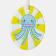 Niedliche sich hin- und herbewegende blaue Quallen in kawaii Art mit Blasen.