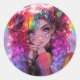 Kawaii Rainbow Hair Braids Anime Girl Runder Aufkleber