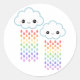 Niedliche Wolken mit Gesichtern und Regenbogenregen.