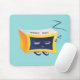 Kawaii Schlafuhrmousepad mit lustiger digitaler Illustration, die einen gelben niedlichen Wecker darstellt, der über einen fröhlichen hellblauen Hintergrund schläft.