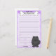Niedliches Kawaii Spitzbriefpapier hat einen entzückenden Cartoonhund, im schwarzen Mantel, in der unteren rechten Ecke. Fertigen Sie sofort dieses Briefpapier besonders an, indem Sie hier "Ihren Namen" innerhalb des Hundeknochens ersetzen. Der Hintergrund ist ein hellpurpurnes. Vervollkommnen Sie für Pom Eigentümer!