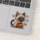 Spielend Siamesischer Kätzchen Aufkleber im kawaii chibi Halloween Stil, ideal für Katzenliebhaber und festliche Handwerker.