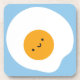 Aufmachung eines niedlichen glücklichen Spiegeleies auf einem blauen Hintergrund.