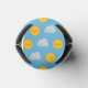Repeat pattern of happy suns and sad rain clouds on a blue sky background for changeable springtime weather.