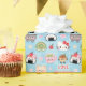 This pattern is special for its extremely cute, kawaii-style food characters. It features a seamless repeating design of smiling sushi (onigiri, nigiri, maki), dumplings, and a matcha drink. The arrangement creates a perfect circular frame around a light blue center, making it ideal for personalization. This cheerful, modern illustration is perfect for personalized stickers, menu borders, or framed art.