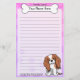 Buntes Kawaii unbekümmertes Königcharles Spanielbriefpapier mit einer Cartoonhundezucht in der unteren rechten Ecke. Der Spitzenteil kann mit Ihrem Namen innerhalb des großen Hündchenknochens personalisiert sofort sein. Grenz- und Papierhintergrund sind- ein hübsches Rosa zu Lila verblassen. Dieses ist die Blenheim Mantelfarbe.