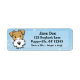 Niedliche Wire Fox Terrier Rücksendeadressen-Aufkleber für Hundefreunde! Funkelnd blaues Design hat einen Cartoon der Hunderasse auf den verlassen, und Sie können sofort alle Ihre eigenen Informationen, gedruckt auf der rechten Seite.