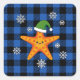 Kawaii Xmas Starfish auf Blue Buffalo Muster Quadratischer Aufkleber