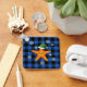 Kawaii Xmas Starfish auf Blue Buffalo Muster Schlüsselanhänger