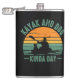 Phantastische Kajak-Design-T - Shirt, Plakate, Taschen, Planer, und mehr mit einem Kajakfahrer und seinem Hund paddeln auf einem Fluss mit Text, der Kayak und Hund Kinda Day liest, großartig für alle, die Lieben Kajak mit ihrem Hund!