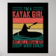 Phantastische Kajak Design T - Shirt, Plakate, Taschen, Planer, und mehr mit einer Kajakfisch-Silhouette auf einem Fluss mit Text, der mir sagt, ich bin ein Kayak Girl Genau wie ein normales Mädchen, außer viel Cooler!