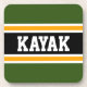 Dieses sportliche, farbenfrohe Design zeichnet sich durch einen sportlichen KAYAK-Text in einem hervorgehobenen breiten schwarzen Streifen mit weißen und gelben Pinstreifen gegen waldgrüne äußere Streifen aus. Der Text und die Farben in diesem Design können personalisiert sein.