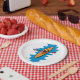 Ein Kajak-Design eines orangen Kajaks im Wasser. Dieses Design wirkt auf diese Paper-Teller sehr effektiv