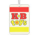 Riecht nach Nostalgie! Lass allen, dass Fahrten in Ihrem Fahrzeug, dass Sie sich erinnern, Amerikas Spielzeug-Store, KB Toys! Auf beiden Seiten des Lufterfrischers erscheint das ikonische KB Toys Logo.